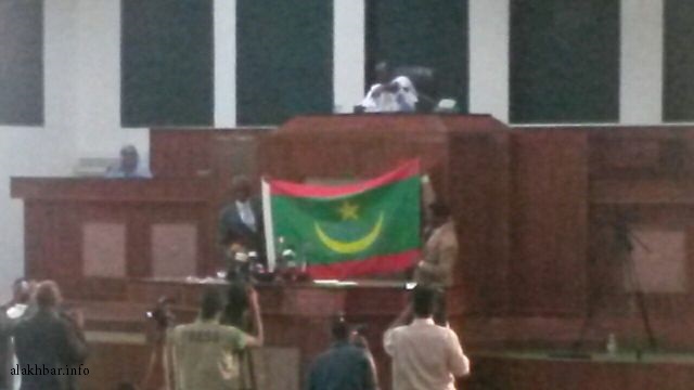 الأخبار (نواكشوط) ـ استعرض وزير الدفاع الموريتاني جالو مامادو باتيا خلال خطابه بجلسة الجمعية الوطنية مساء اليوم الأربعاء، نموذج العلم المقترح بخطيه الأحمرين.