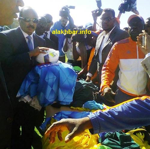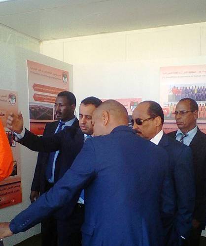 واستعرض الرئيس الذي كان مرفوقا برئيس الاتحادية الموريتانية لكرة القدم أحمد ولد يحي والسلطات الإدارية في الولاية