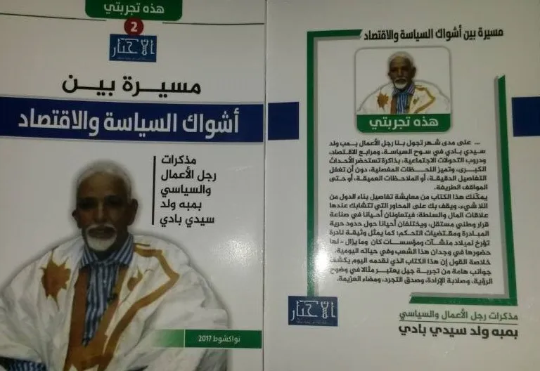 وحمل الكتاب الذي تصدره الوكالة بمناسبة الذكرى السابعة والخمسين لعيد الاستقلال، عنوان: “مسيرة بين أشواك السياسة والاقتصاد”، وتحدث فيه ولد سيدي بادي عن تجربته السياسية والاقتصادية مقدما شهاداته على عدد من الأحداث الوطنية الهامة.