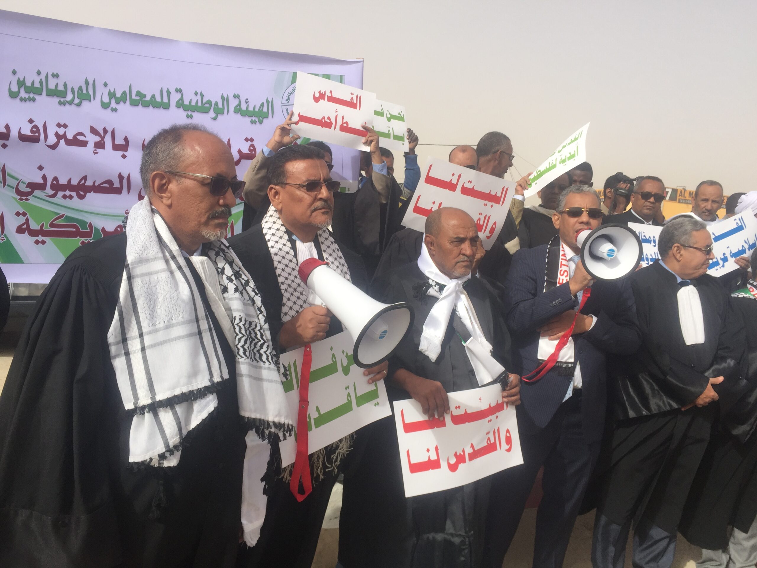 وتأتي وقفات المحامين العرب استجابة لتوصيات المكتب الدائم لاتحاد المحامين العرب في اجتماعه الطارئ بالقاهرة يوم 18 دجمبر 2018 بمشاركة نقيب الهيئة الوطنية للمحامين الموريتانيين الأستاذ الشيخ ولد حندي، تحت شعار :”القدس عاصمة فلسطين الأبدية”.