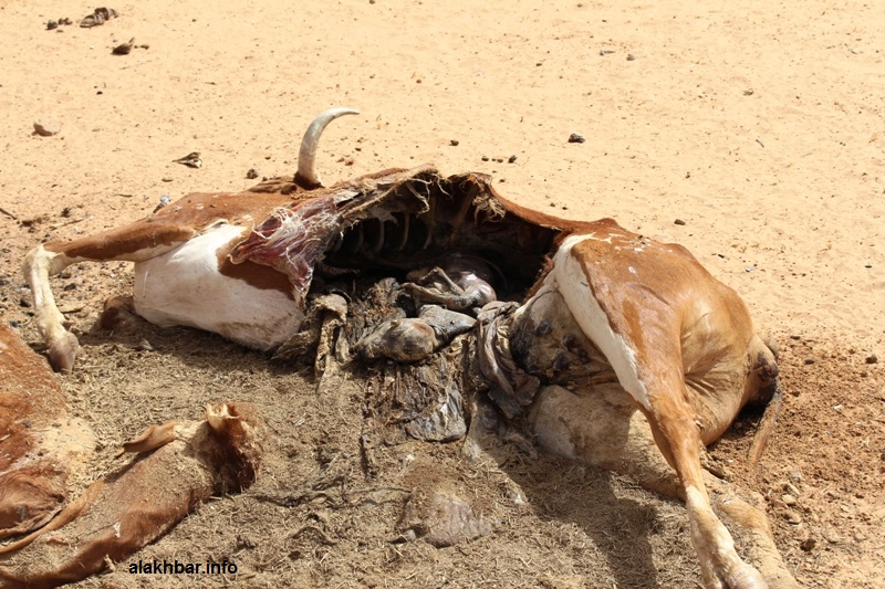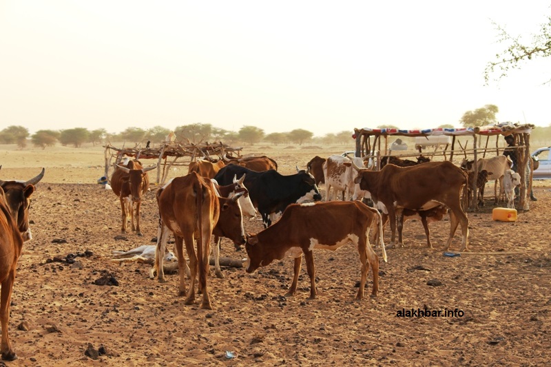 وأشار سيدي في حديثه للأخبار – وهو يتابع حركة القطعان في محيط المنزل بعد أن غدى إبقاؤها حبيسة المراح أكثر جدوائية – إلى أن المنطقة التي يوجد فيها كانت وجهة للملاك القطعان خلال الأشهر الأخيرة من العام الماضي حيث كانت من آخر المناطق التي يوجد مرعى، مردفا أن العديد منهم غادروا إلى مناطق أخرى بحثا عن المرعى غير أن مئات الرؤوس من الأبقار ما تزال في المنطقة، وهي معرضة للموت بفعل الجفاف في أي لحظة.