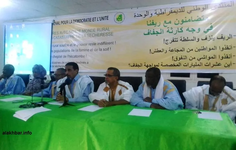 الأخبار (نواكشوط) وجه قادة المنتدى الوطني للديمقراطية والوحدة، نداء استغاثة إلى دول الجوار، لمساعدة موريتانيا في إنقاذ ثروتها الحيوانية في ظل الجفاف الذي يضرب البلاد.