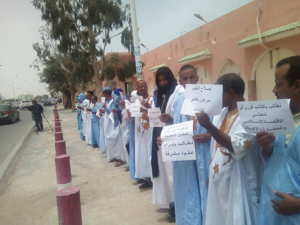 الأخبار (نواكشوط) ـ استعرضت رابطة الأساتذة المتعاونون بالمعهد العالي للدراسات والبحوث الإسلامية مطالبهم في وقفة احتجاجية نظموها أمام القصر الرئاسي صباح اليوم الاثنين 28 مايو 2018 هي الثانية من نوعها خلال أسبوع.