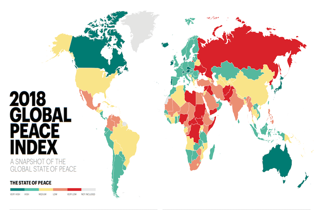 وسجل المؤشر تراجعا للسلام في 92 دولة عبر العالم، وحصول تحسن في 71 دولة، ووصف المعهد نتائج هذا العام بأنها الأسوأ منذ 4 سنوات.