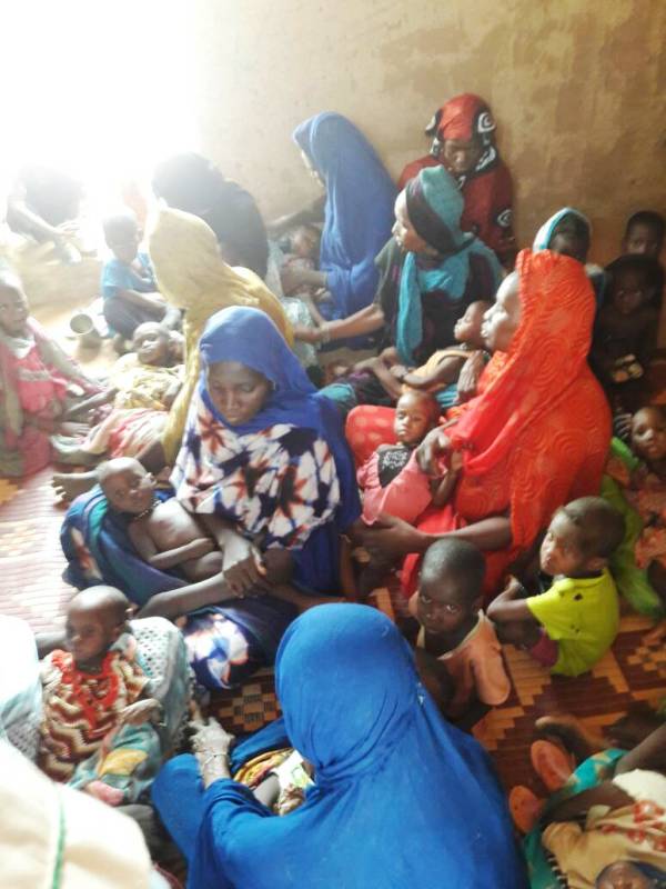 وتظهر الصور حجز البعثات الصحية التي وصلت القرية لعشرات الأطفال وأمهاتهم في مكان خاص، حيث لا يوجد في القرية مركز صحي، وأقرب مركز صحي لها يقع في قرية تسمى “أم اظيلميم” على بعد 15 كلم منها.