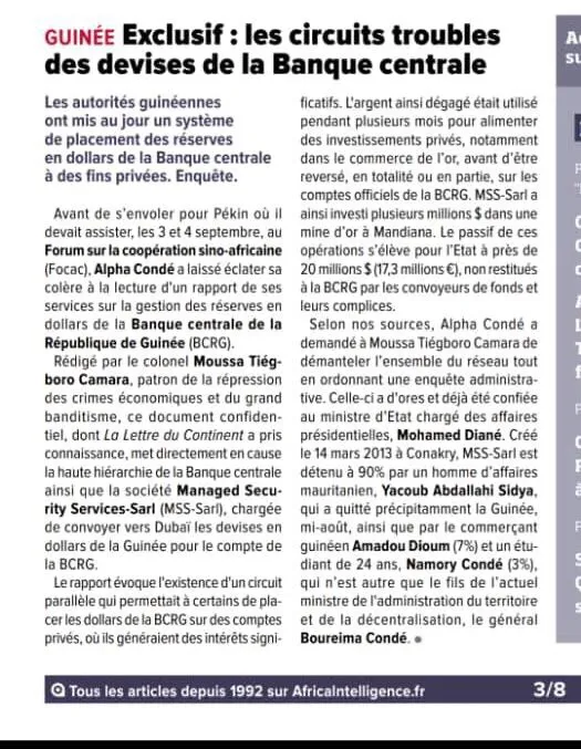 وأشار التقرير إلى وجود “طريقة موازية تتيح لبعض المسؤولين وضع دولار البنك الغيني في حسابات خاصة”.