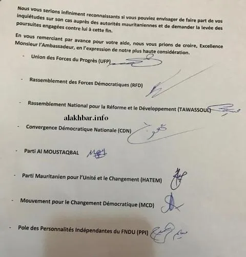 ولفتت الرسالة إلى أن مذكرة التوقيف ضد ولد بوعماتو تحول دون هذا اللقاء، مؤكدة أن الاعتقال يتهدده من طرف السلطات الموريتانية.