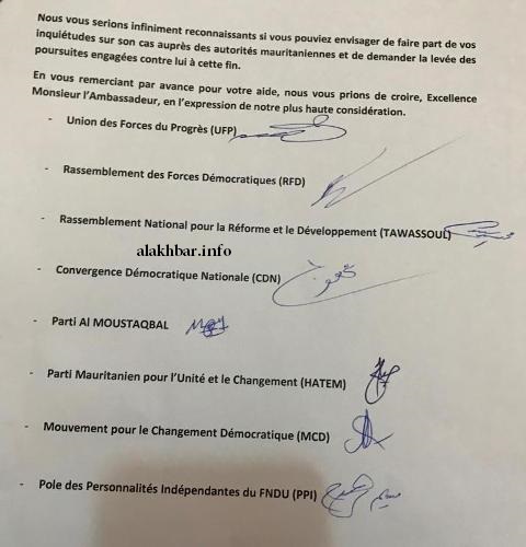 الأخبار (نواكشوط) ـ طالبت قوى المعارضة عددا من السفراء الغربيين في نواكشوط بالتدخل لدى السلطات الموريتانية لإلغاء مذكرة التوقيف بحق رجل الأعمال محمد ولد بوعماتو.
