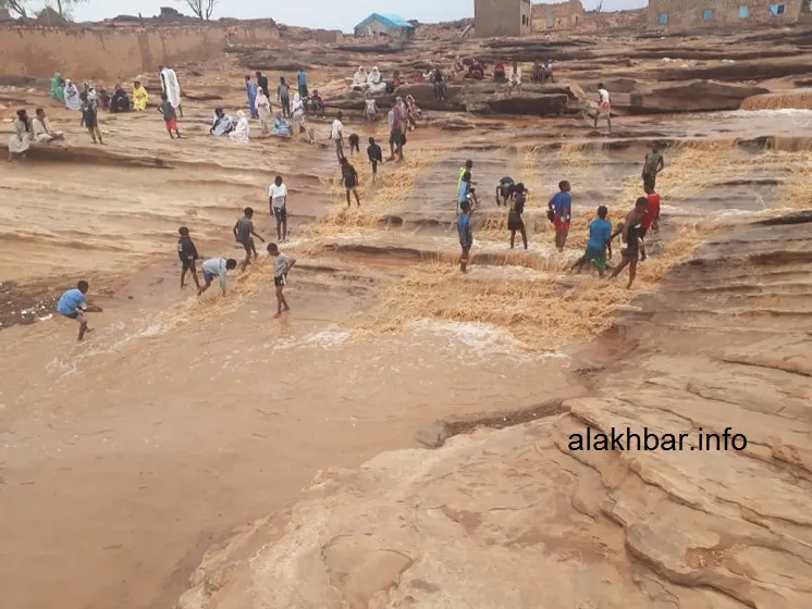 الأخبار (العيون) – تجمع عدد من سكان مدينة العيون عاصمة ولاية الحوض الغربي للاستمتاع بمشاهد السيول في بطحاء المدينة عقب الأمطار التي تهاطلت على المنطقة اليوم.