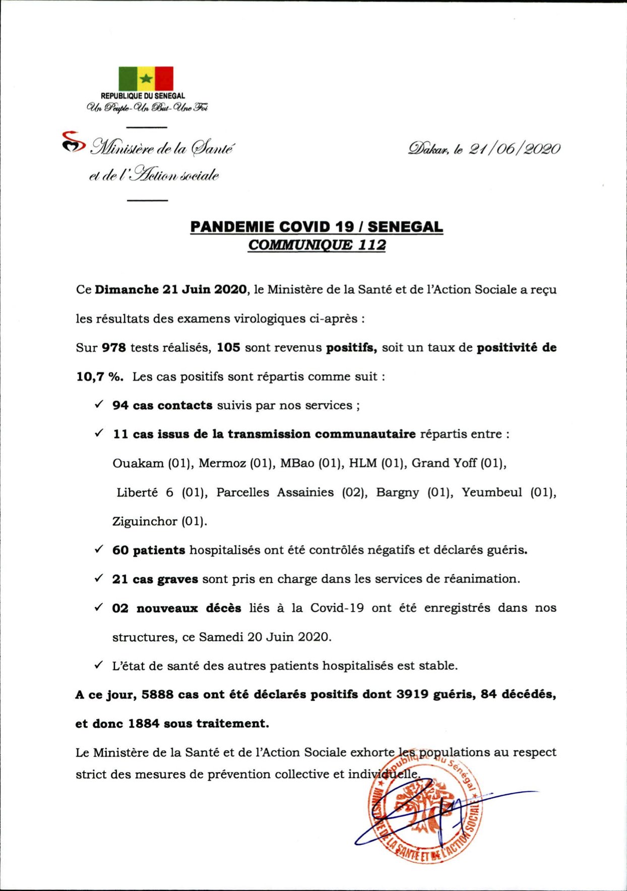 الأخبار (داكار) – سجلت السنغال إلى غاية أمس الأحد 5888 حالة إصابة مؤكدة بفيروس كورونا المستجد، وذلك إثر إعلان وزارة الصحة عن 105 حالات إصابة جديدة.