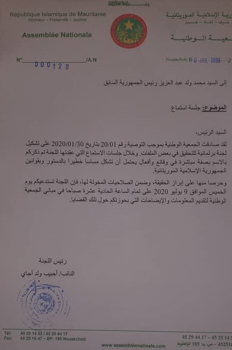 الأخبار (نواكشوط) ـ رفض الرئيس السابق محمد ولد عبد العزيز استلام الاستدعاء الذي وجهته إليه لجنة التحقيق البرلمانية.