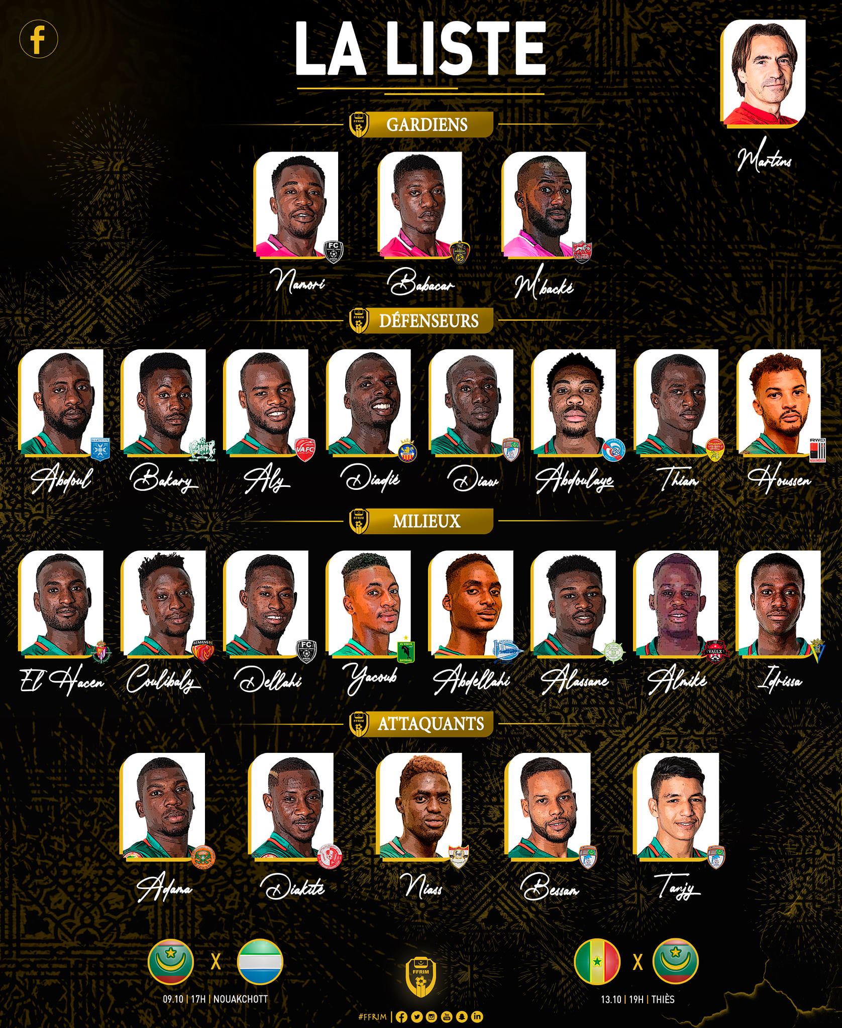 الأخبار (نواكشوط) أعلن مدرب المنتخب الموريتاني كورينتان مارتينس عن قائمته المستدعاة للمباراتين الدوليتين الوديتين أمام كل من منتخبي السيراليون يوم 9 أكتوبر الجاري في ملعب شيخا بيديا بنواكشوط، والسنغال يوم 13 من الشهر نفسه بملعب “لات ديور” في مدينة تييس السنغالية، لحساب أيام الفيفا أكتوبر 2020.