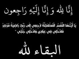 إنا لله وإنا إليه راجعون، لله ما أخذ وله ما أعطى وكل شيء عنده بأجل مسمى فلتصبروا ولتحتسبوا.