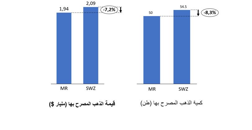 حسب بيانات الجمارك الإماراتية فان واردات الذهب من موريتانيا بين عامي 2012 و2018 بلغت 6141 كلغ من الذهب، ووصلت قيمتها إلى 210 مليون دولار. في المقابل فإن الكمية الواردة في البيانات الموريتانية هي أقل بكثير إذ لم تتعد 871 كلغ (أي فقط 15% مما صرحت جمارك دبي بأنه وصلها)، بقيمة 26 مليون دولار.
