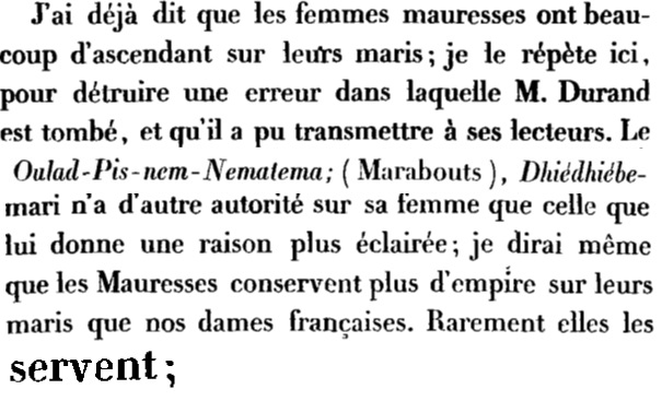 تفاجأ رنيه كاييه بالمكانة التي تحظى بها المرأة في مجتمع البيظان (الصفحات 128، 162 ـ 163 )، بمختلف مكوناته، واعتبر أن سلطتها على الرجل أكبر بكثير مما تتمتع به المرأة في فرنسا في تلك الفترة، منبها إلى أن مجتمع البيظان لا يتبنى تعدد الزوجات، مما يجعله يشكل استثناء بهذا الخصوص، مقارنة بالمجتمعات الإفريقية الأخرى.