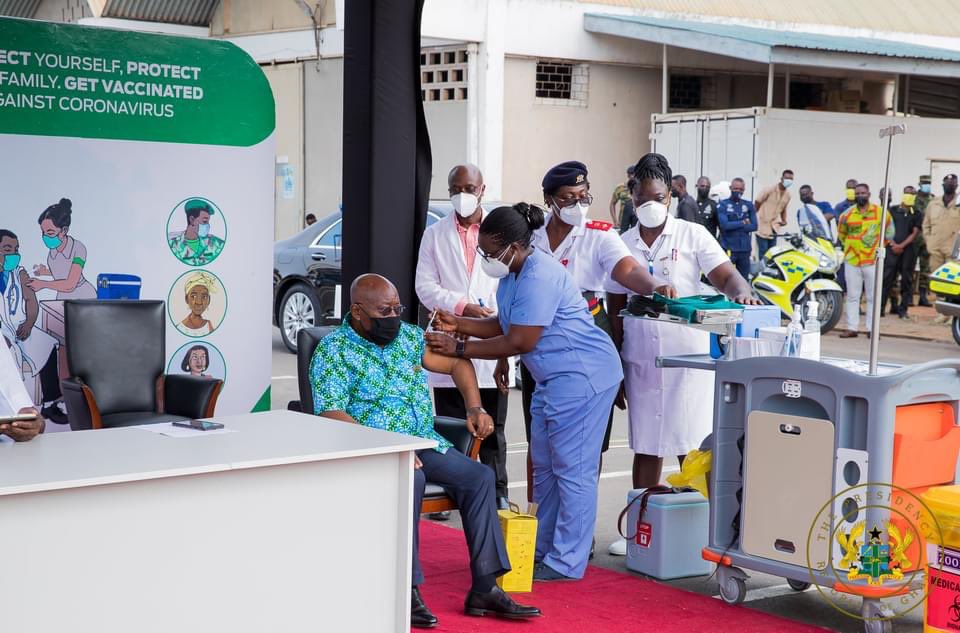 وقال الرئيس في تصريح عقب تلقيه اللقاح إن من المهم أن يعطي “المثل على أن هذا اللقاح آمن” بأن يكون “أول شخص يتلقاه، من أجل أن يشعر كل شخص في غانا بارتياح إزاء تلقيه”.