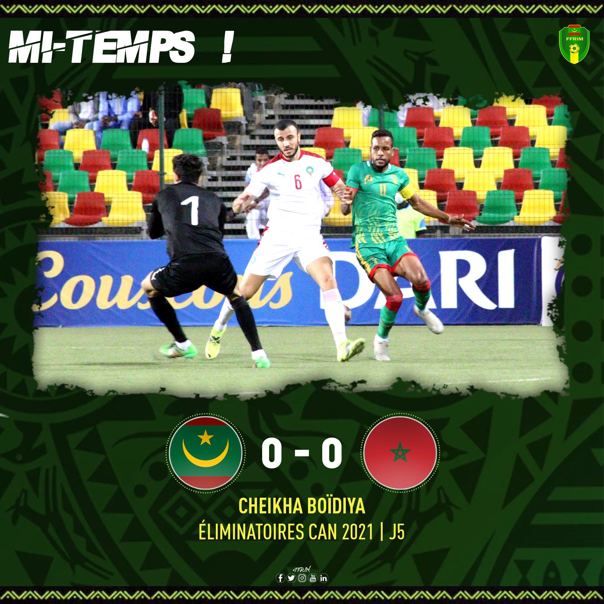 الأخبار (نواكشوط) – انتهى الشوط الأول من المباراة التي جمعت مساء اليوم المنتخبين الموريتاني والمغربي بالتعادل السلبي من دون أهداف، وتقام المباراة في ملعب شيخا ولد بيديا في العاصمة نواكشوط.