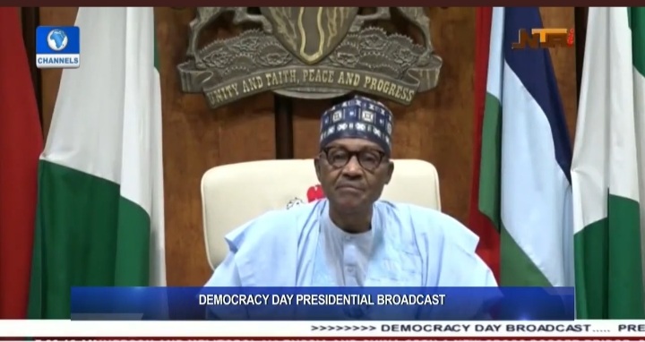 ودعا بخاري في خطاب ألقاه بمناسبة الذكرى السنوية لاستعادة نيجيريا نظامها الديمقراطي، إلى “توحيد الصفوف”، كما شدد على “ضرورة تبني موقف معقول خلال الحملة والانتخابات”.
