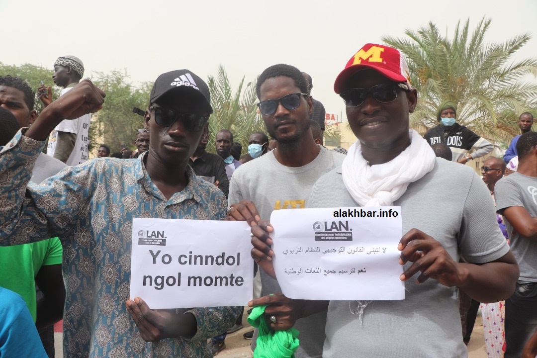الأخبار (نواكشوط) ـ نظمت منظمة “من أجل ترسيم اللغات الوطنية” OLAN، صباح اليوم الجمعة بالقرب من مبنى الجمعية الوطنية، وقفة احتجاجية طالبوا خلالها بإضفاء الطابع الرسمي على اللغات الوطنية،(البولارية، السونكية والولفية).