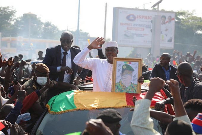 وتجمعت حشود غفيرة بين مطار “سينو” حيث حطت طائرة مايغا، وقصر كولوبا حيث استقبل من طرف الرئيس الانتقالي عاصيمي غويتا.