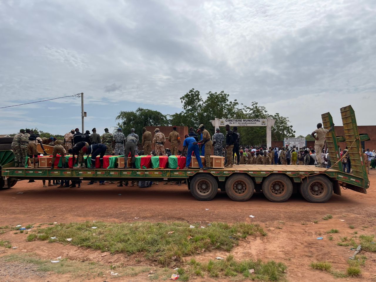 وقد لفت نعوش الجنود بالعلم الوطني البوركيني، وحملت إلى جانبها صورهم، ونقلوا إلى مقبرة “غوغين”، وسط حضور ذويهم والكثيرين من سكان واغادوغو لمراسم دفنهم.