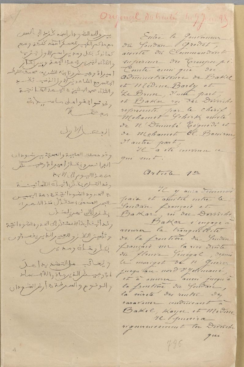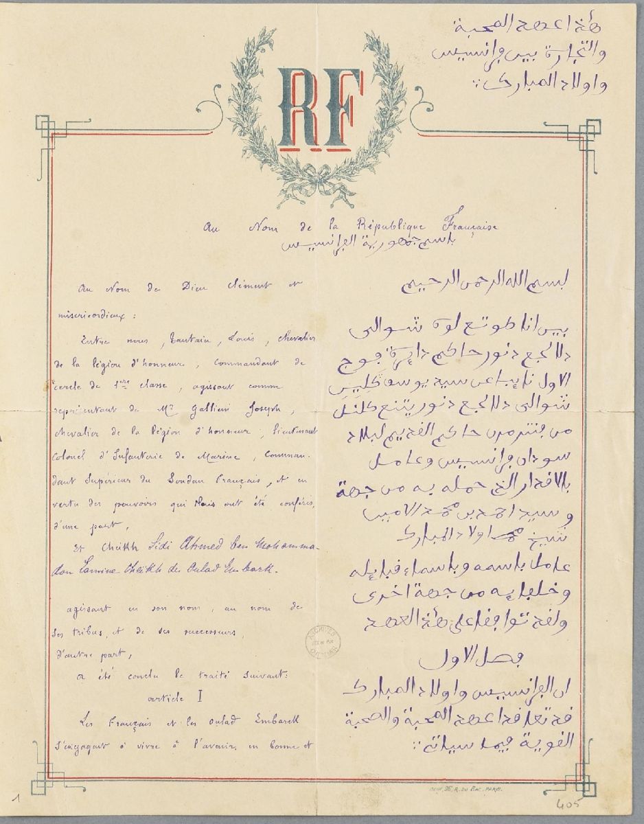 نشرت وزارة الثقافة الفرنسية على موقع الأرشيفات القومية لما وراء البحار، ومنذ بعض الوقت، مجموعة من الاتفاقيات كانت السلطات الفرنسية قد وقعتها مع الإمارات الموريتانية الخمس، ومع بعض القبائل المورتيانية في القرنين الثامن عشر والتاسع عشر، وتبلغ تلك النصوص 46 اتفاقية، بعضها من عدة صفحات وبعضها أقل من ذلك، وبعضها باللغتين العربية والفرنسية وبعضها بالفرنسية فقط.