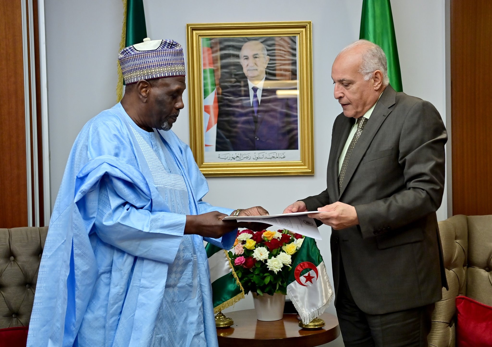 وقد استقبل المبعوث الخاص الحامل لرسالة خطية موجهة إلى الرئيس عبد المجيد تبون، من قبل وزير الخارجية الجزائري أحمد عطاف.