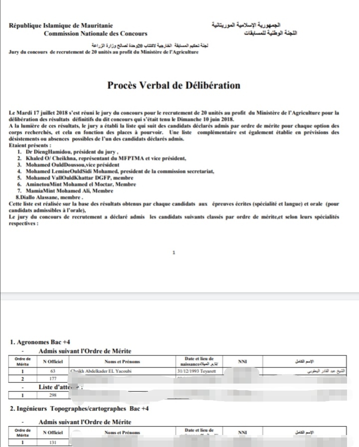 شاركت في مسابقة اكتتاب وزارة الزراعة Ministère de l’Agriculture سنة 2018 لاختيار 20 إطارا منهم اثنان فقط من تخصصي صدرت النتائج في 17 يوليو وكنت الأول حسب الترتيب الاستحقاقي (انظر الصور المرفقة) وللأمانة كانت مسابقة شفافة ولو لم تكن كذلك لما حلمت بالنجاح أصلا.