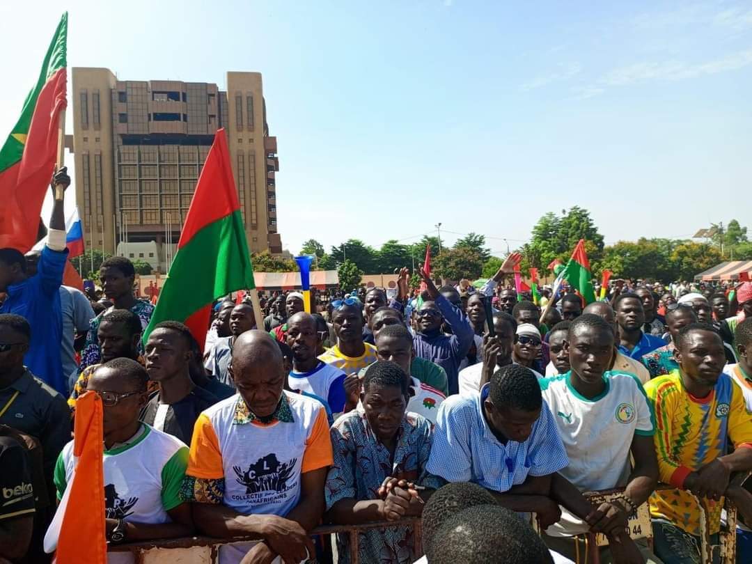 وقد رفع المشاركون في المظاهرات بالعاصمة أعلام كل من بوركينا فاسو ومالي والنيجر وروسيا، بالإضافة إلى ملصقات تحمل صورة الرئيس تراوري.