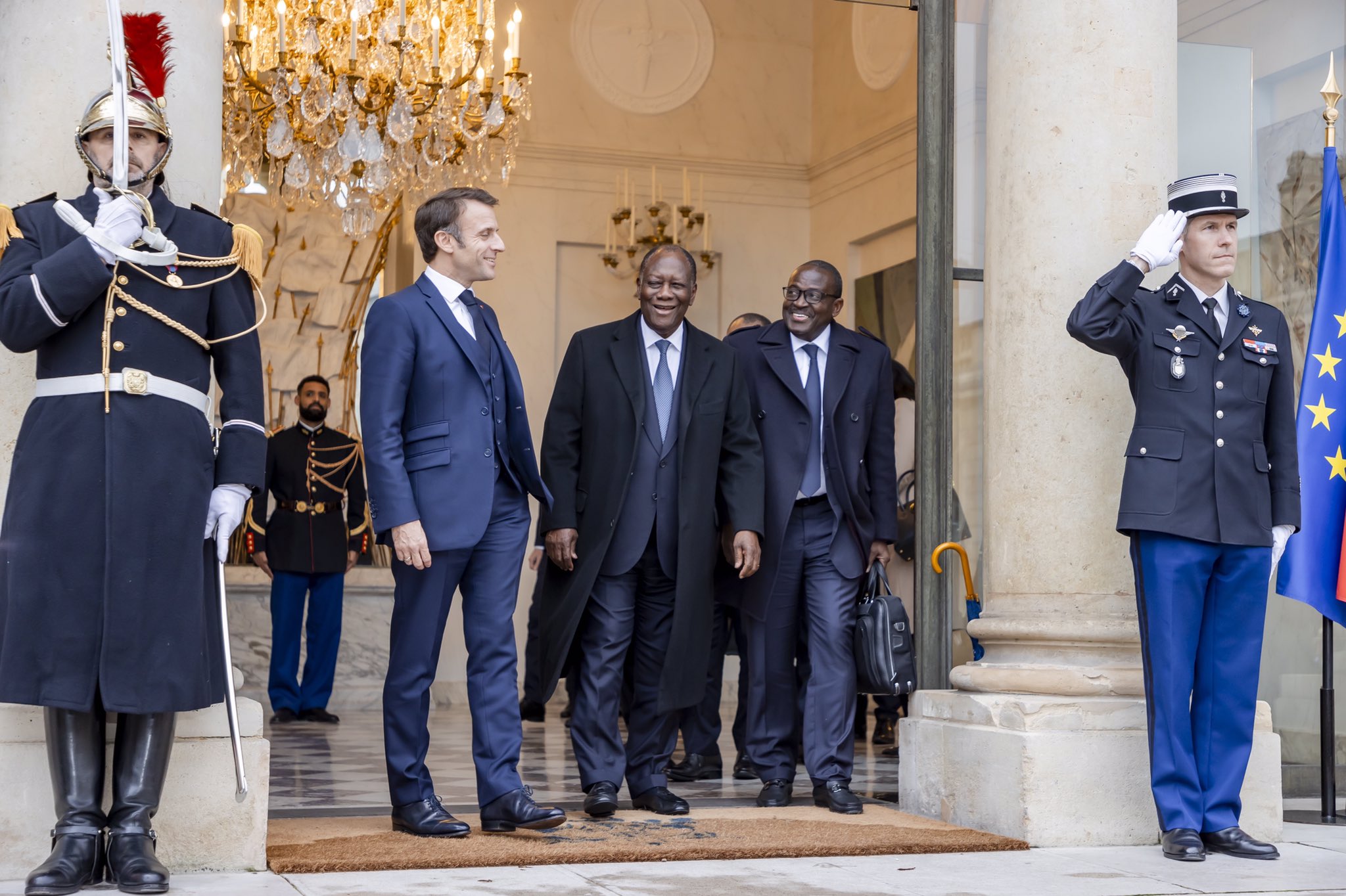 وجدد ماكرون خلال مباحثات أجراها الثلاثاء في الإيليزي مع الرئيس الإيفواري الحسن واتارا، دعم فرنسا للمجموعة الاقتصادية لدول غرب إفريقيا “إيكواس” في مساعيها الرامية “لإيجاد حل للأزمة النيجرية”.