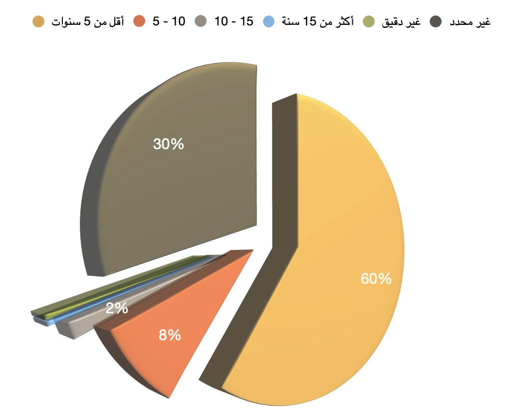 أما من تتراوح خدمتهم في الجيش ما بين 5 إلى 10 سنوات فنسبتهم 30%، وهي نسبة معتبرة، وتوحي بأن الإقبال على الخدمة العسكرية كان حاضرا قبل الحرب، وكان يحظي باستجابة مقبولة نسبيا لدى السكان.