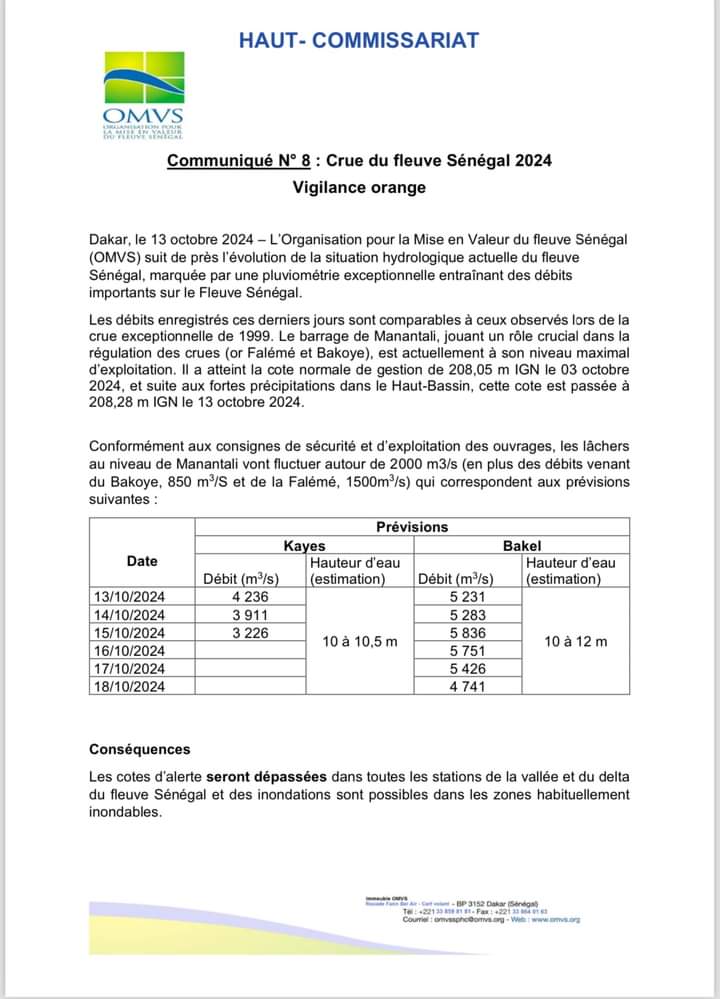 وأبرزت منظمة استثمار نهر السنغال أن لديها “خطة استعجالية تدمج أحدث البيانات الهيدرولوجية، والتأثيرات المحتملة لتغير المناخ، وتغطي كامل حوض نهر السنغال”.