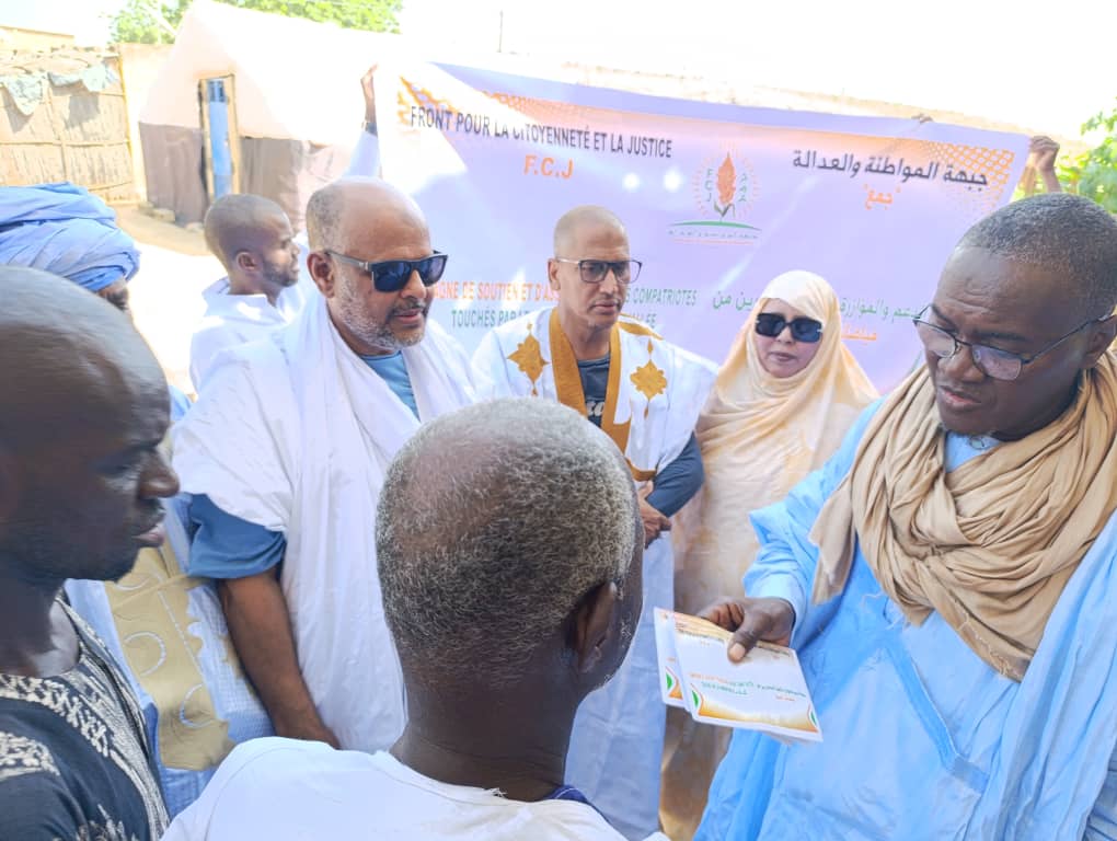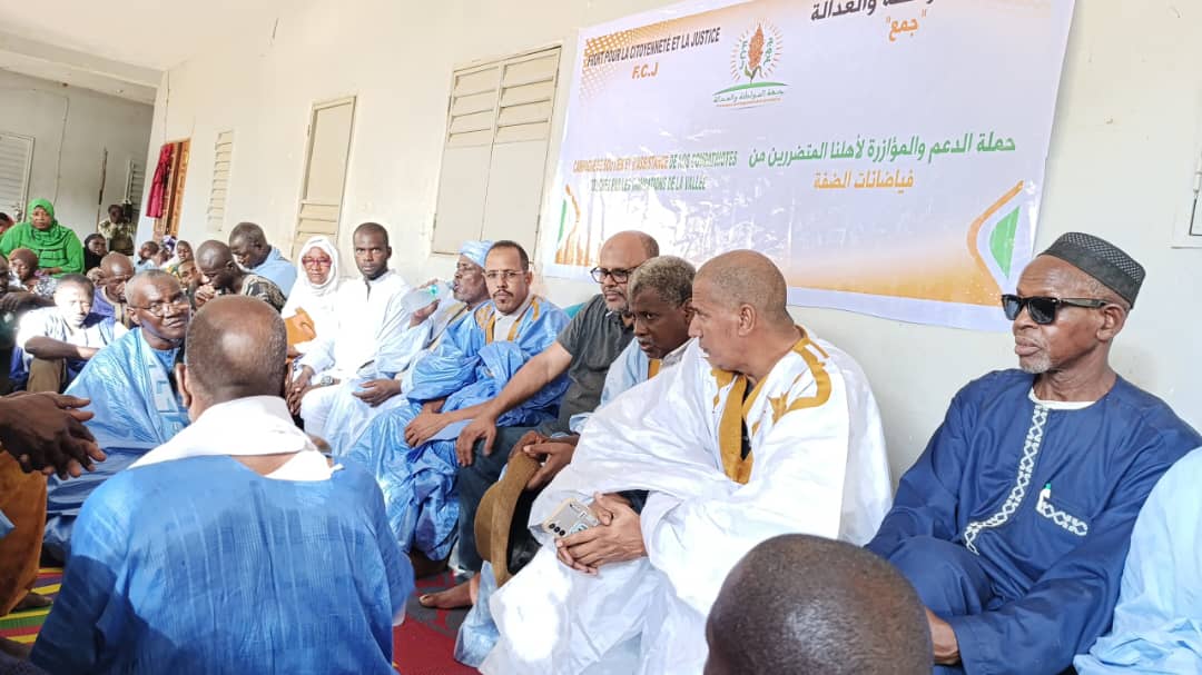 الأخبار (نواكشوط) – أدى وفد من حزب جبهة المواطنة والعدالة “جمع” (تحت التأسيس) زيارة لمناطق متضررة من فيضان مياه نهر السنغال، وخصوصا في ولاية كيدي ماغا، وذلك “للوقوف ميدانيا على حجم الأضرار التي لحقت بالمنازل والممتلكات، وتقديم عبارات المواساة والدعم للمتضررين”.