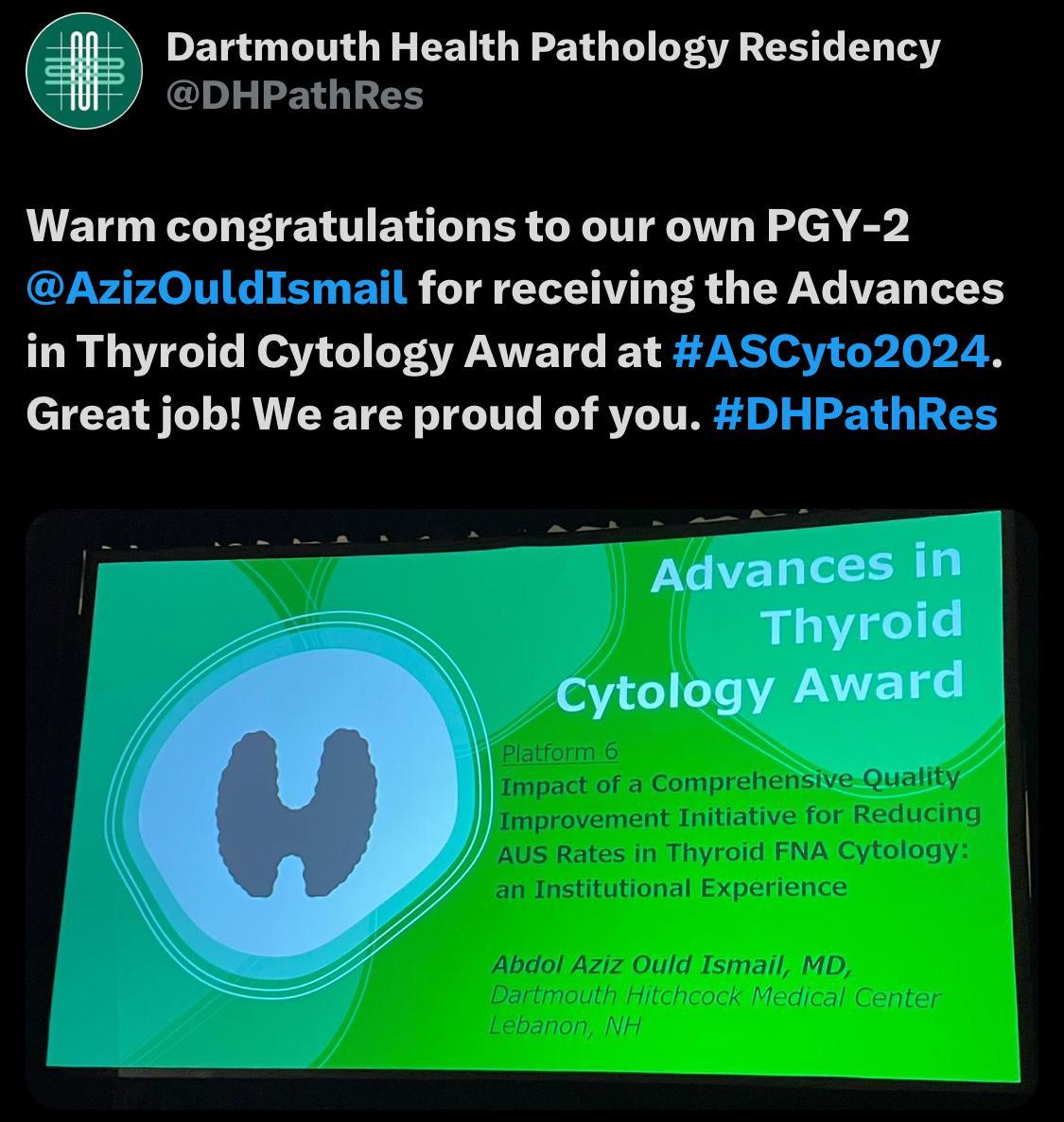 الأخبار (نواكشوط) – منحت الجمعية الأمريكية لعلم الخلايا (ASC) جائزة أحسن بحث لتطوير أفضل الممارسات في علم الخلايا الدرقية للدكتور الموريتاني عبد العزيز ولد محمد أحمد ولد إسماعيل الرباني.