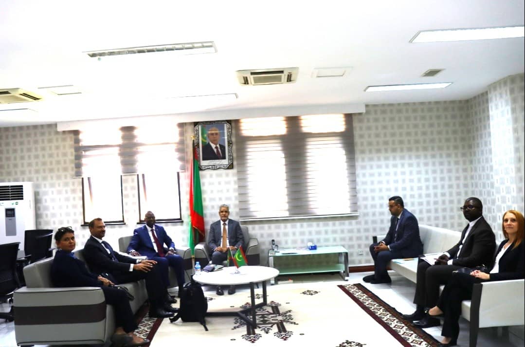 وحضر مباحثات الوزير مع البعثة المدير العام للسياسات واستراتيجيات التنمية شيخن ولد بداد، والمدير العام للتمويلات والتعاون. الاقتصادي محمد سالم ولد الناني، والممثل المقيم للبنك الدولي في موريتانيا إبو جوف.