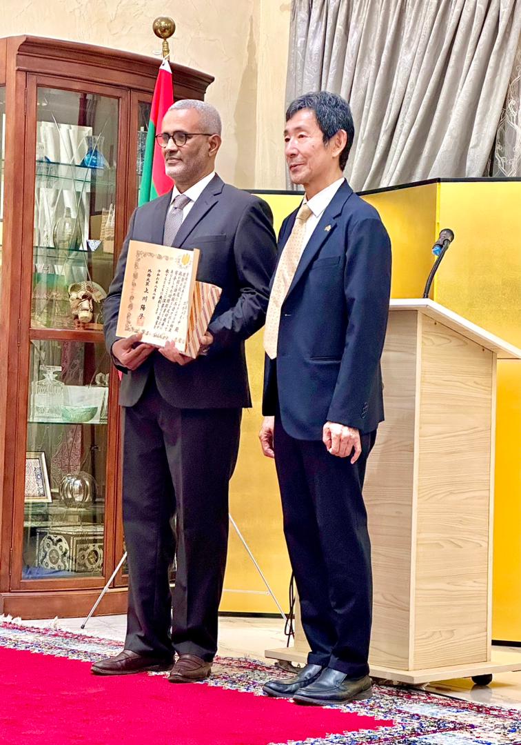 وأقام السفير الياباني في موريتانيا يوشيدا تتسوكوني حفل استقبال في مقر إقامته بنواكشوط لتسليم التكريم لولد اصوينع باسم وزيرة خارجية اليابان يوكو كاميكاوا.