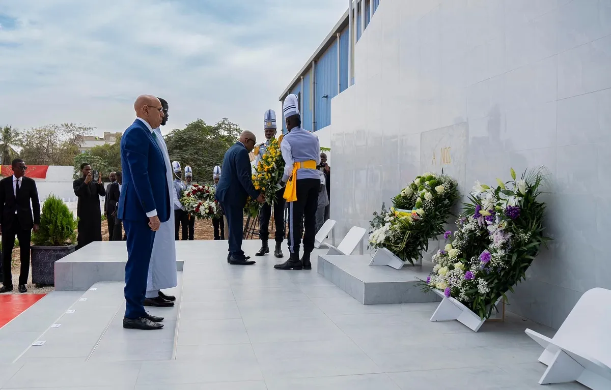 ووضع ولد الغزواني مع الرئيس السنغالي بصيرو ديوماي فاي اكليلا من الزهور على النصب التذكاري في المقبرة التي تضم رفات المجندين.