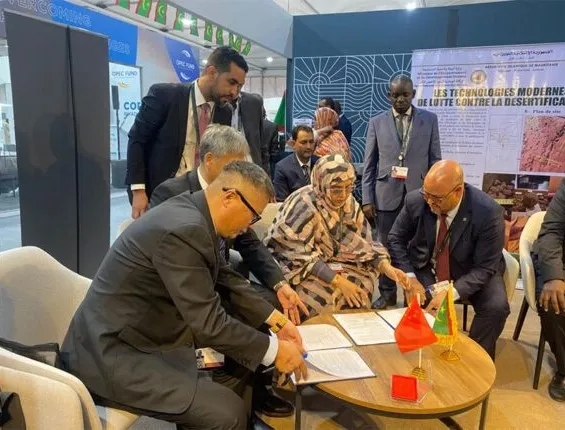 وتم توقيع الاتفاقية على هامش الدورة الـ16 لمؤتمر الأطراف حول مكافحة التصحر والجفاف التي افتتحت أمس بمدينة الرياض بالمملكة العربية السعودية، ووقعتها عن موريتانيا وزيرة البيئة والتنمية المستدامة، مسعودة بنت بحام، وعن شركة “سينوواي فريست تكنولوجي الصينية”، رئيسها ليو تاو.