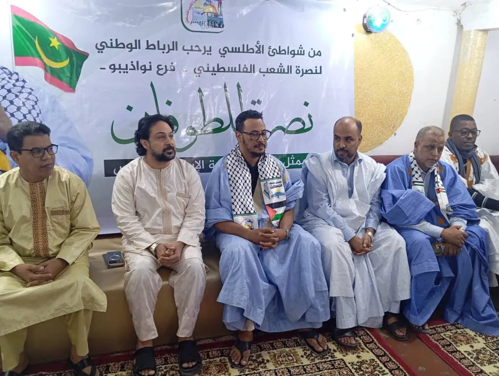 رئيس فرع الرباط الوطني لنصرة الشعب الفلسطيني في مدينة نواذيبو محمد المصطفى الحضرامي أكد أن لسكان مدينة نواذيبو مواقف مشهودة في دعم الشعب الفلسطيني، وفي مساندته في كل محطات الجهاد والتضحية لتحرير الأرض، وتطهير المسجد الأقصى من المحتلين.