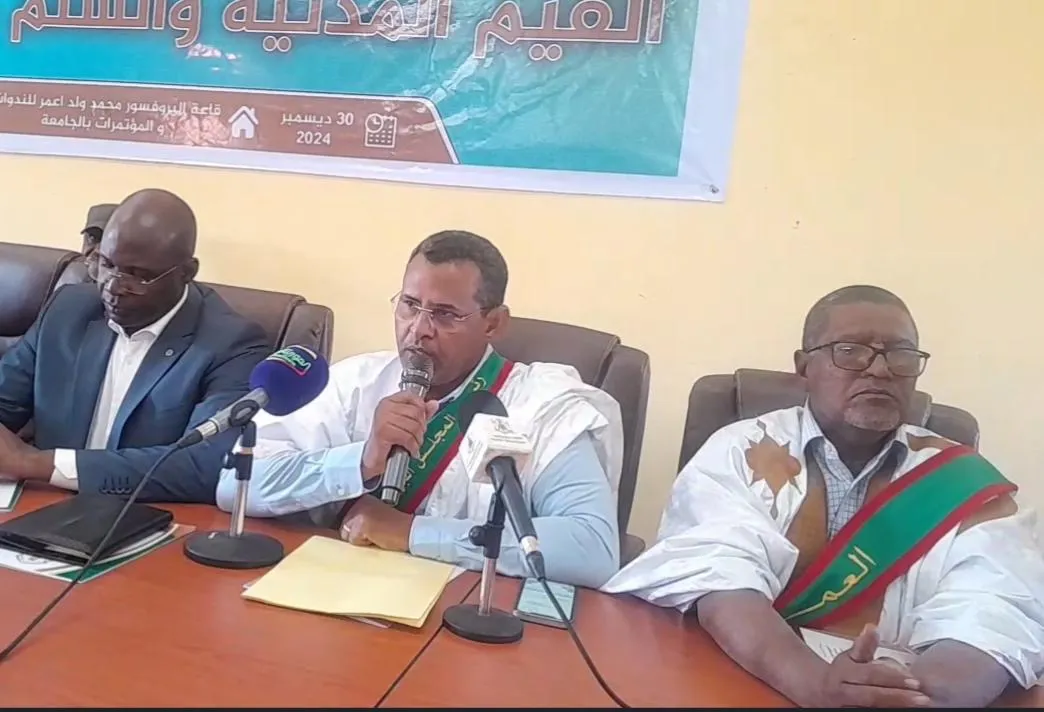 وذكر ولد محمد في كلمة له بمناسبة ندوة منظمة بجامعة العيون عن القيم المدنية والسلم الأهلي، أنّ من دواعي المُطالبة بافتتاح المطار تأكيد رئيس الجامعة د. محمدو لمرابط اجيد على ضرورة افتتاحه، وذلك خلال العرض الذي قدّمه لهم عن الجامعة.