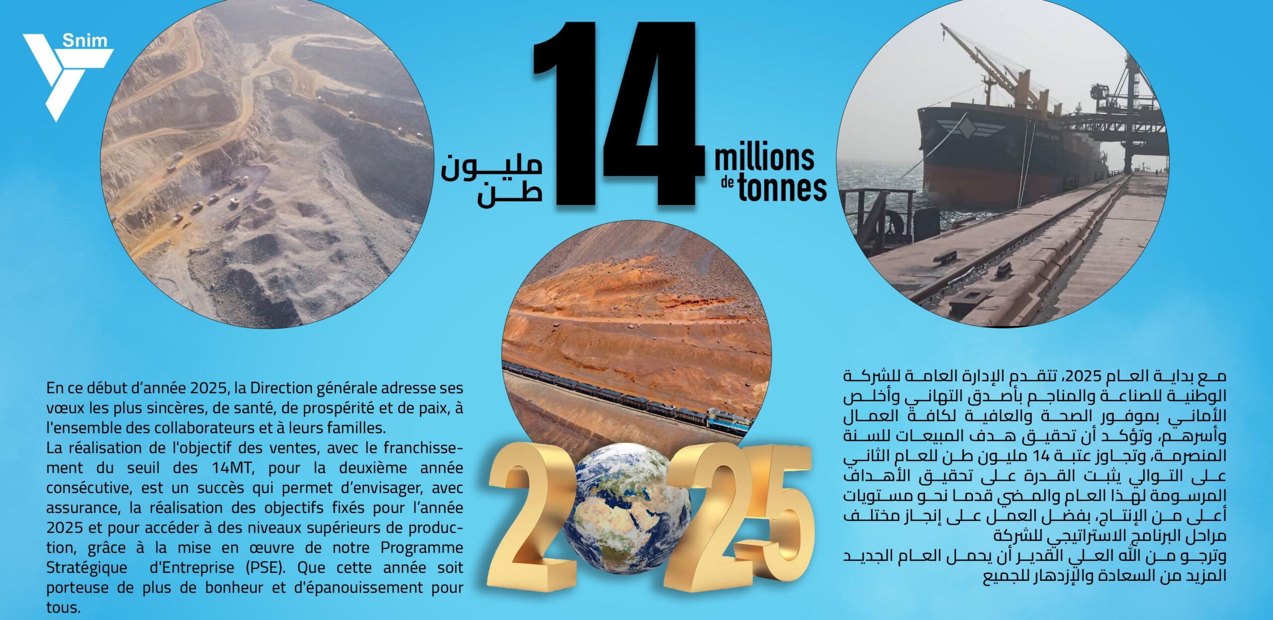 الأخبار (نواكشوط) أعلنت الشركة الوطنية للصناعة والمناجم (سنيم) أن مبيعاتها تجاوزت عتبة 14 مليون طن للعام الثاني على التوالي.