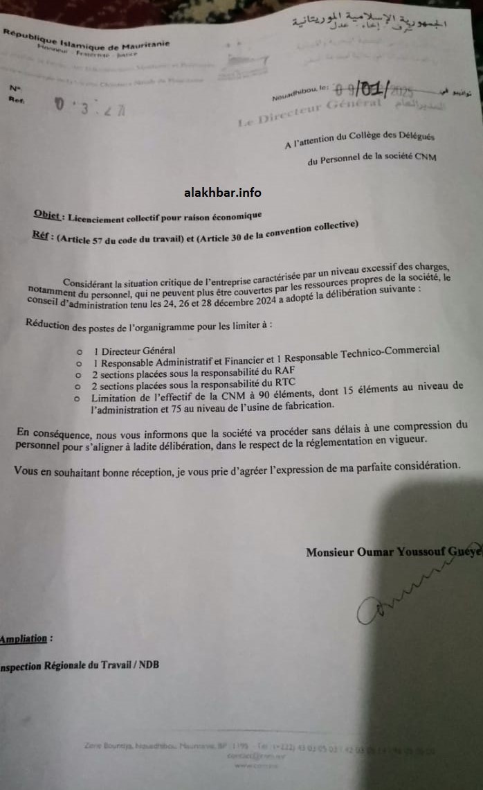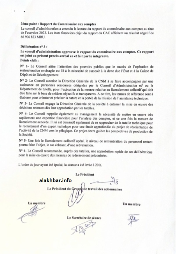 كما قرر المجلس ضمن قراراته بهدف “إنقاذ الشركة من شبح الإفلاس”، إجراءات فورية كـ”الإنهاء الفوري لعقد إيجار مقر الشركة في نواكشوط”، وإعادة هيكلة الشركة، وتقليص عمالها بأكثر من النصف، وكذا تقليص مناصبها.