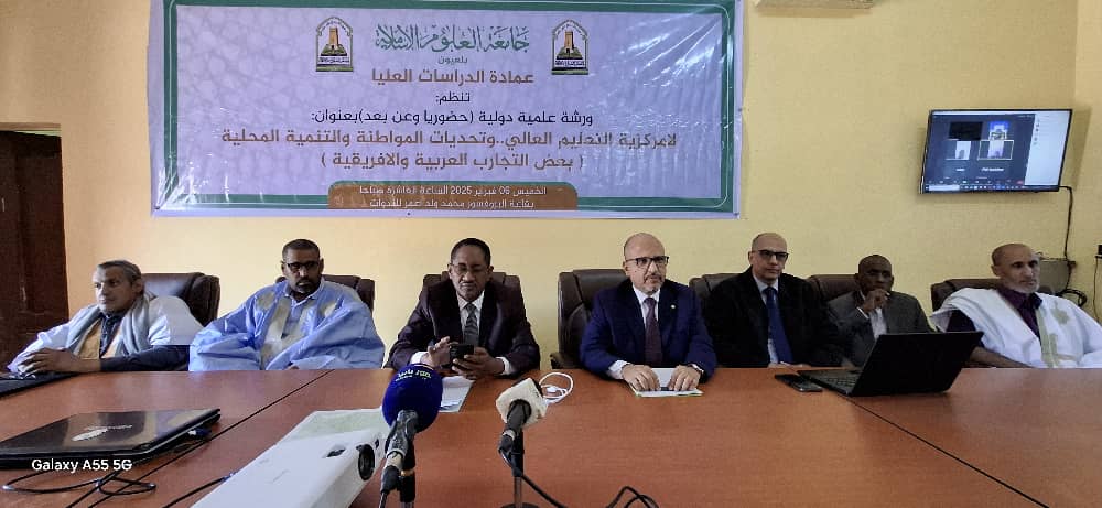 الأخبار (نواكشوط) – نظمت عمادة الدارسات العليا بجامعة العلوم الإسلامية بالعيون ورشة علمية دولية حملت عنوان: “لا مركزية التعليم العالي.. وتحديات المواطنة والتنمية المحلية”، متخذة من بعض التجارب العربية والإفريقية أنموذجا لها.