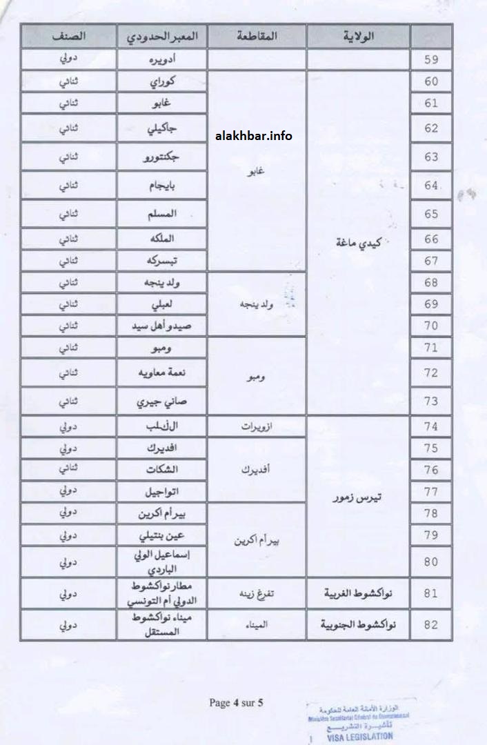 وألغت المادة الرابعة من المقرر كافة الترتيبات السابقة المخالفة لهذا المقرر، وخاصة ترتيبات المقرر رقم: 394، الصادر بتاريخ: 03 فبراير 2010، المعدل، المحدد للمعابر الحدودية الإلزامية في الجمهورية الإسلامية الموريتانية.