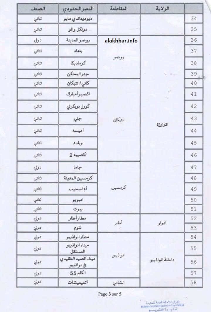فيما تفتح المعابر الدولية أمام المواطنين الموريتانيين، ورعايا كافة الدول وفقا للقوانين والنظم المعمول بها.