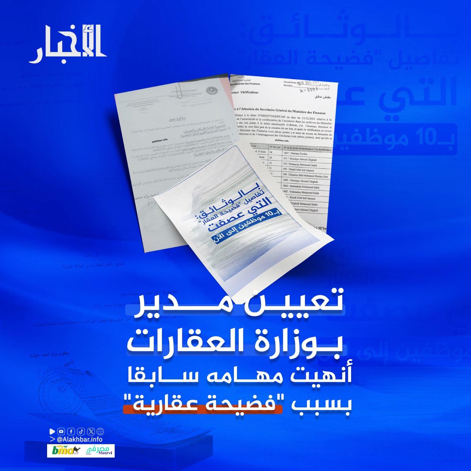 الأخبار (نواكشوط) – عين مجلس الوزراء خلال اجتماعه يوم الأربعاء الماضي 12 مارس الجاري المهندس الخديم أحمدو، مديرا مساعدا لمديرية السجل العقاري في وزارة العقارات، رغم إقالته قبل ثلاث سنوات من منصبه في وزارة الإسكان ضمن إقالات أجريت على خلفية “فضيحة عقارية” عرفت إعلاميا بـ”فضيحة القطع الأرضية البيضاء” في أحد أحياء تفرغ زينة الراقية.