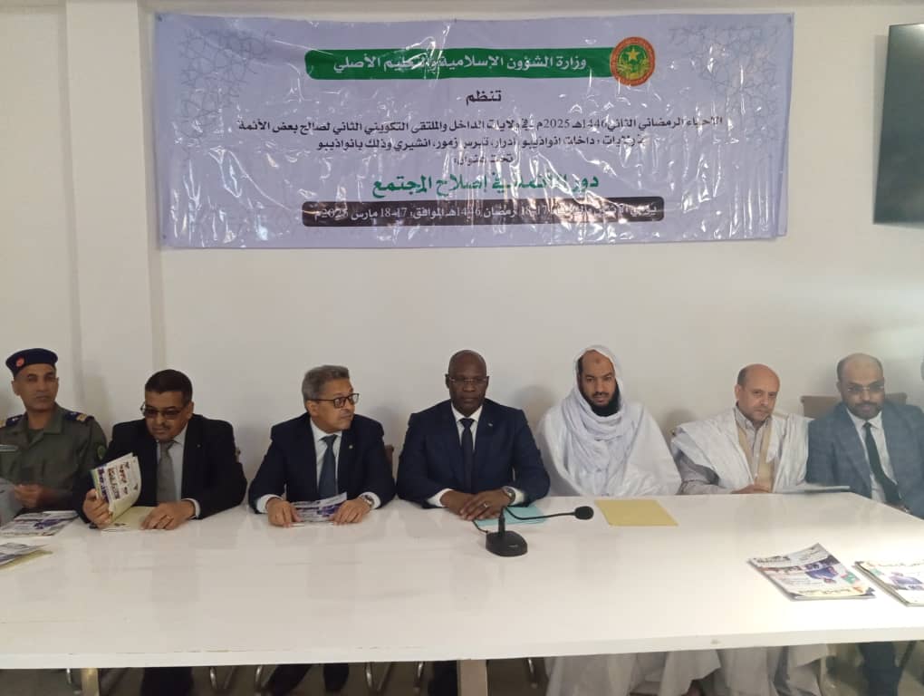 الأخبار (نواذيبو) – افتتحت وزارة الشؤون الإسلامية والتعليم الأصلي اليوم الاثنين بمدينة نواذيبو ملتقى تكوينيا للأئمة في ولايات الشمال يدوم يومين، وأشرف على افتتاحه وزير الشؤون الإسلامية سيدي يحي شيخنا المرابط بحضور الأمين العام لهيئة العلماء الموريتانيين الشيخ ولد صالح، والسلطات الإدارية والأمنية والبلدية والجهة.