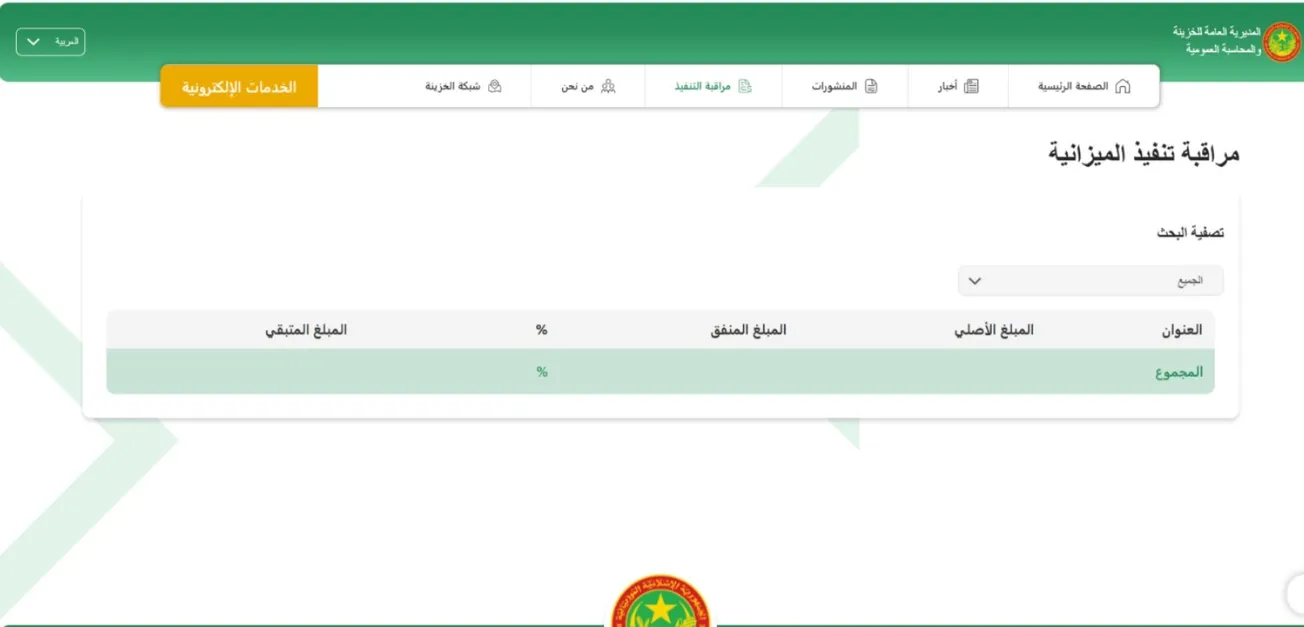 الأخبار (نواكشوط) – حجبت المديرية العامة للخزينة والمحاسبة العمومية تفاصيل إنفاق الميزانية العامة للدولة 2025، رغم مرور عدة أسابيع على بدء إنفاقها، وأبقت الركن الخاصة بها في موقعها الإلكتروني فارغا.