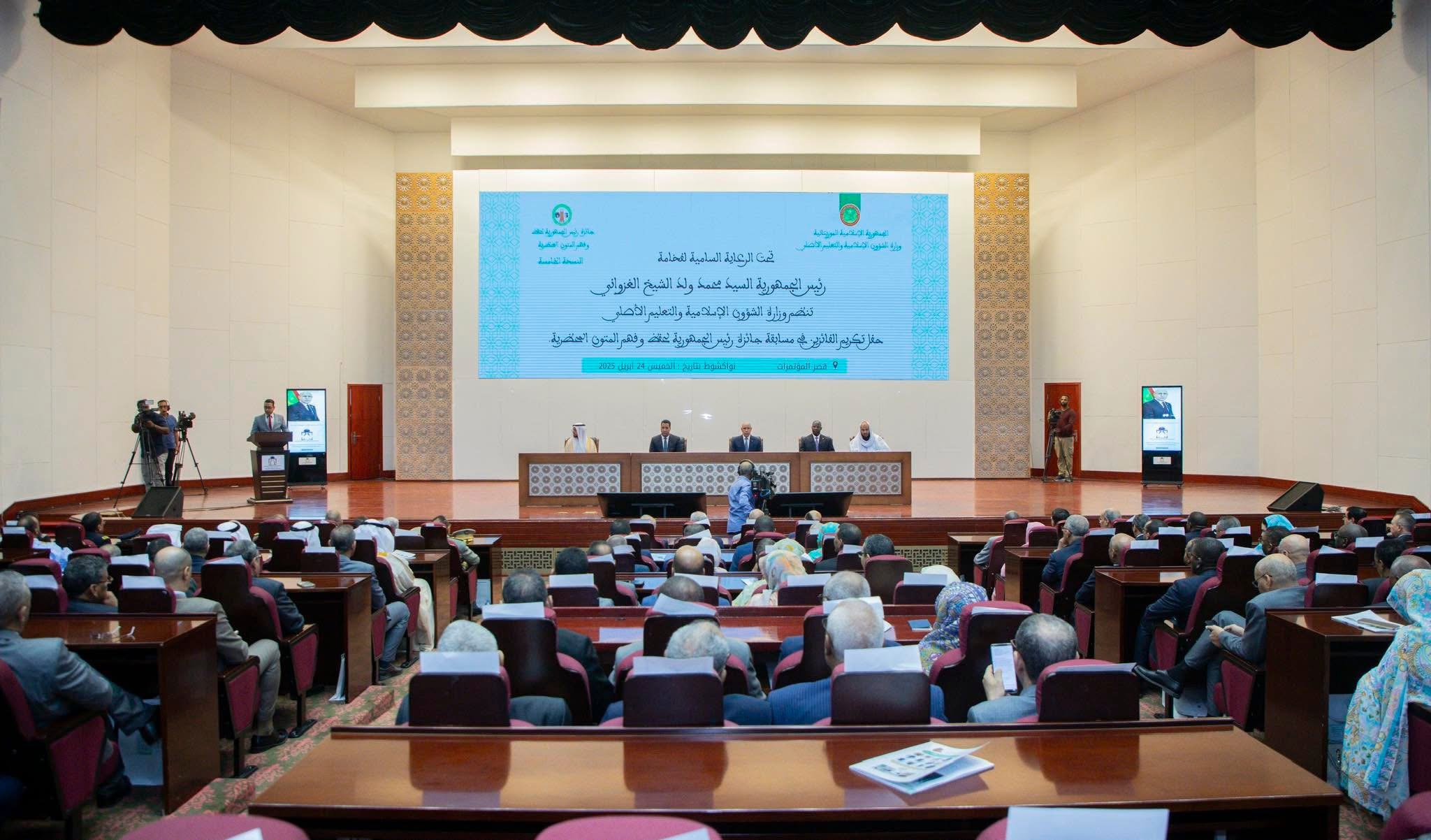 الأخبار (نواكشوط) – كرّم الرئيس محمد ولد الغزواني اليوم الخميس بالمركز الدولي للمؤتمرات في نواكشوط، الفائزين في النسخة الخامسة من “جائزة رئيس الجمهورية لحفظ وفهم المتون المحظرية”.