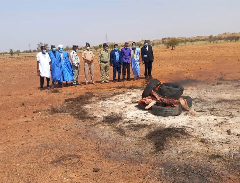 وأشرف حاكم المقاطعة محمد ولد عبد الله، اليوم الثلاثاء، بحضور نائب عمدة البلدية، وممثل حماية المستهلك، والسلطات الصحية والبيطرية والأمنية، على إحراق لحوم هذه البقرة.